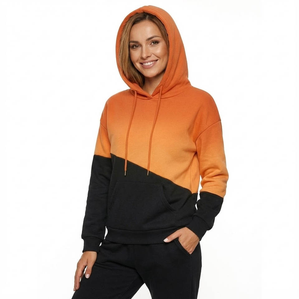 Wholesale Ladies Two Tone Patchwork Hoodies Oversized Loose Fit Casual Kangaroo Pocket Heavyweight Terry Cotton Fleece Hoodies
