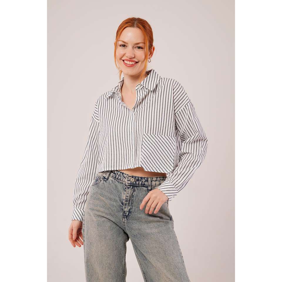 Wholesale Ladies White Silk Chiffon Shirts Asymmetrical Collar Crop Style Stripes Free Size XL Short for Office Autumn Season