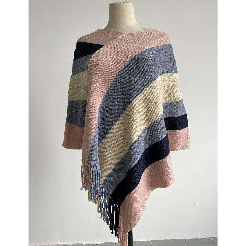 Wholesale Ladies Winter Knitted Shawl Women Mexican Poncho Adult Polybag Picture Silk Screen Printing Plain Color 50 Pcs JH
