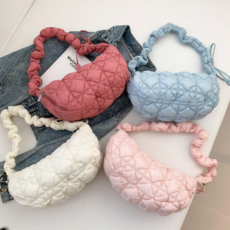 Wholesale Lady's Vintage Large Capacity Dead Soft Nylon Portable National Shoulder Bag Cloud Design Wrinkles Zip Fashionable