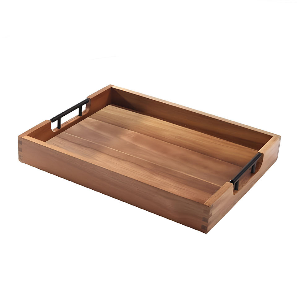 Product name:Large Acacia Wooden Coffee Table Tray with Black Metal Handles