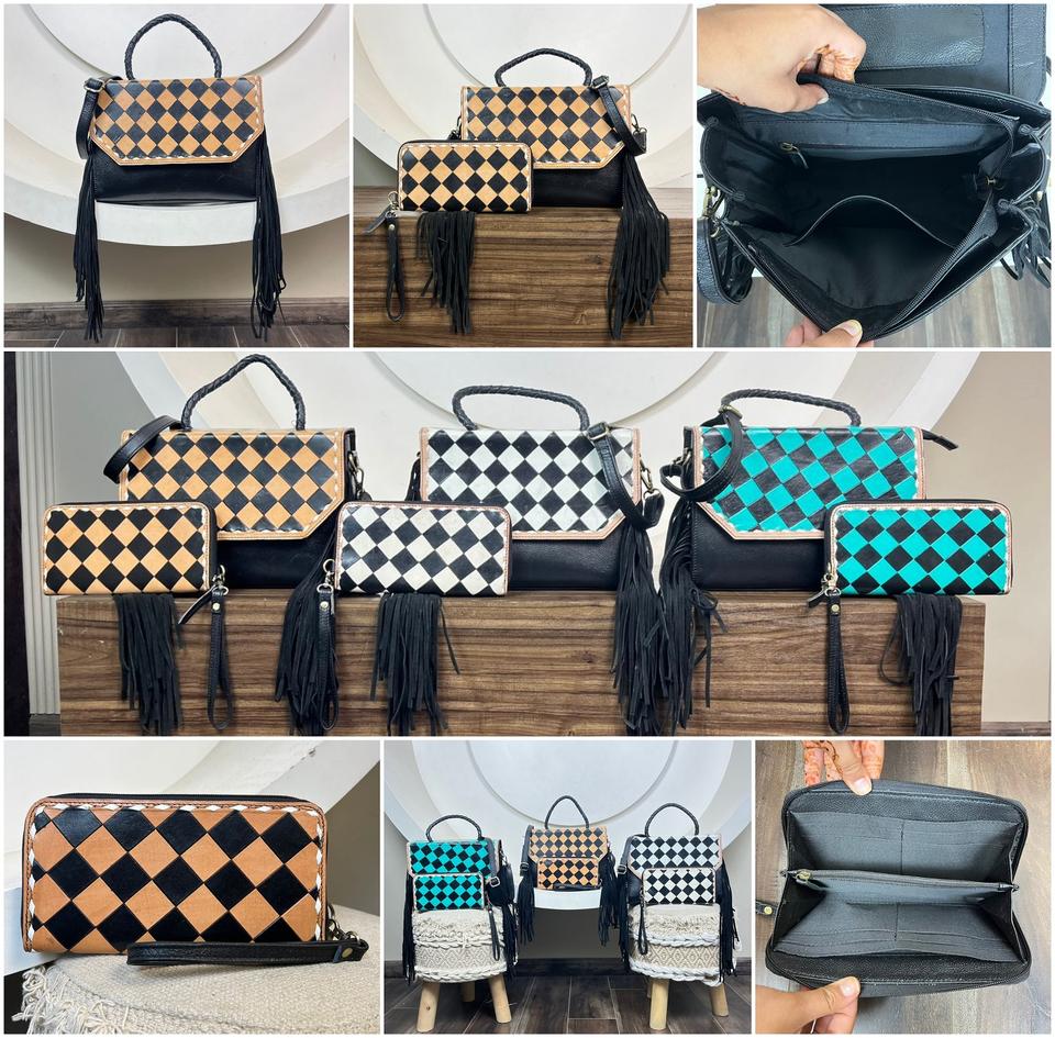 Product name:Checkered Pattern Hand Tooled Leather 2-piece Set