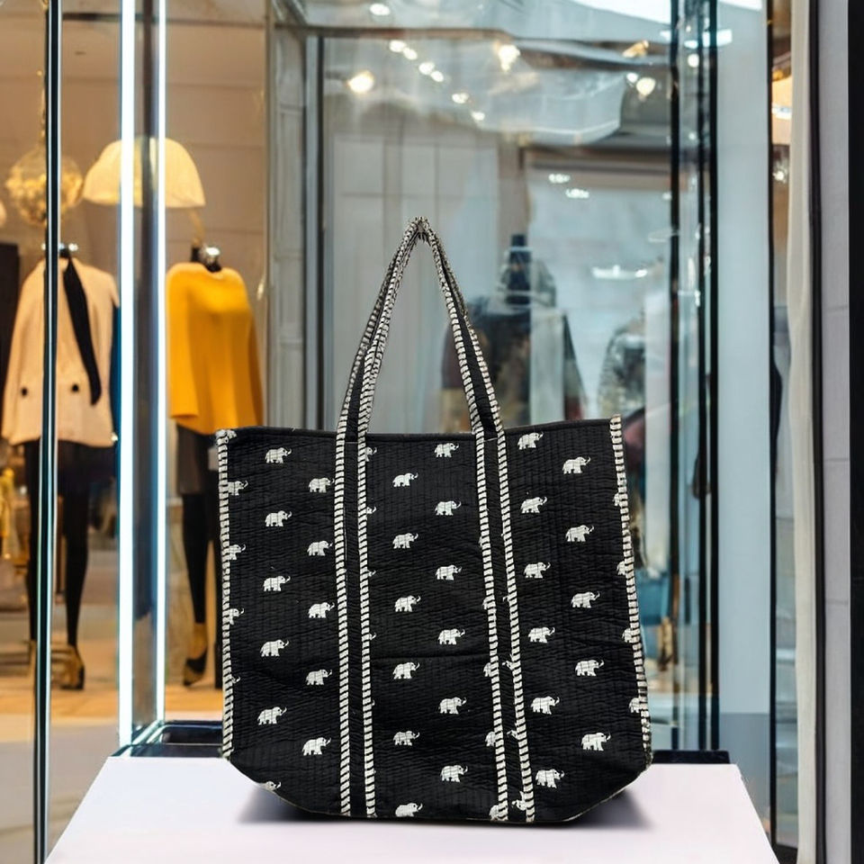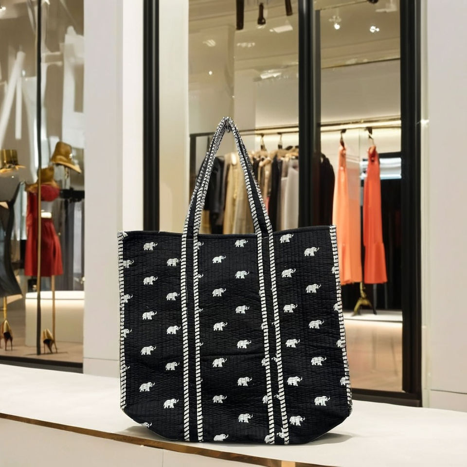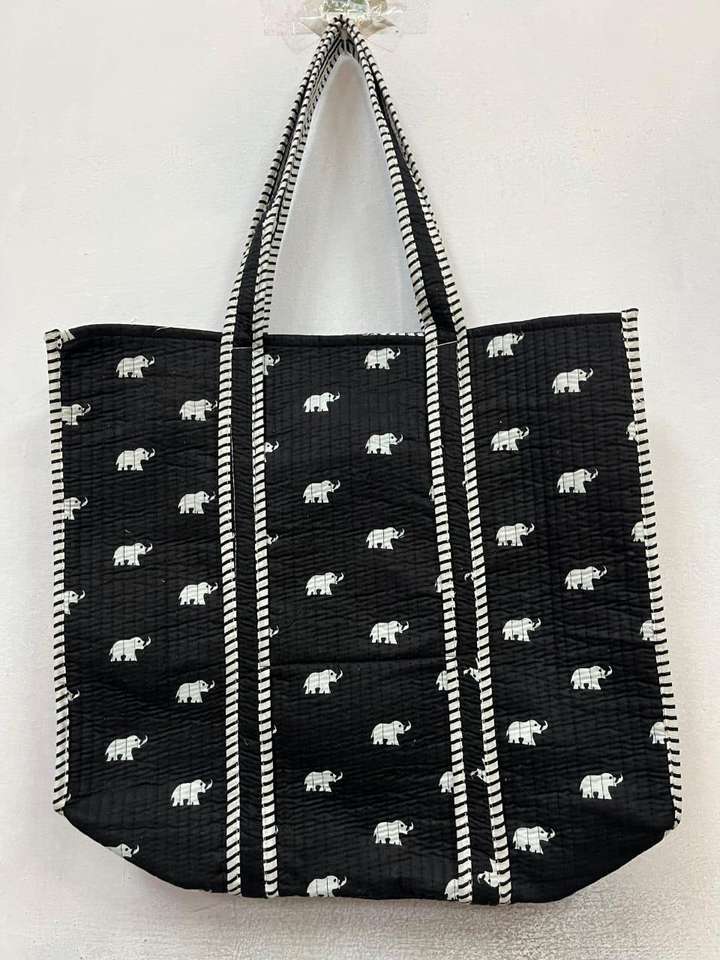 Wholesale Large Capacity Casual Handbag Quilted Elephant Design Bags Spring Shopping Handbags Hand Block Printed Shoulder Purse