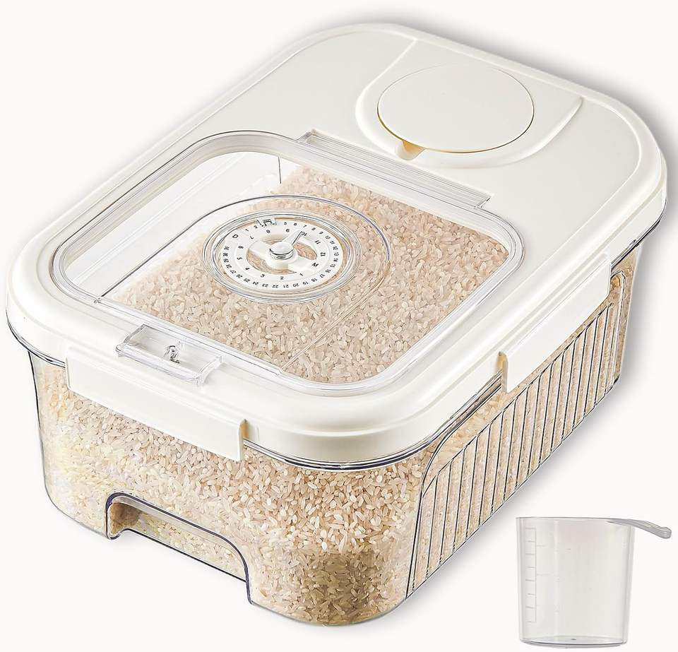 Wholesale Large Capacity Clear Plastic Rice Dispenser Box and Measuring Cup Sealed Grain Storage Container for Food Storage