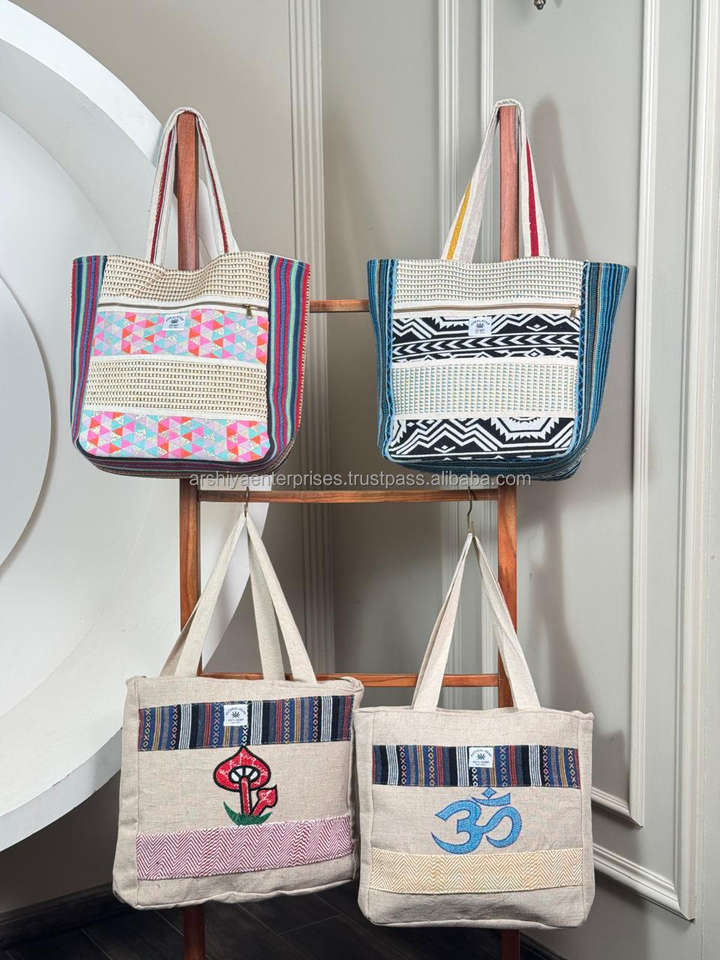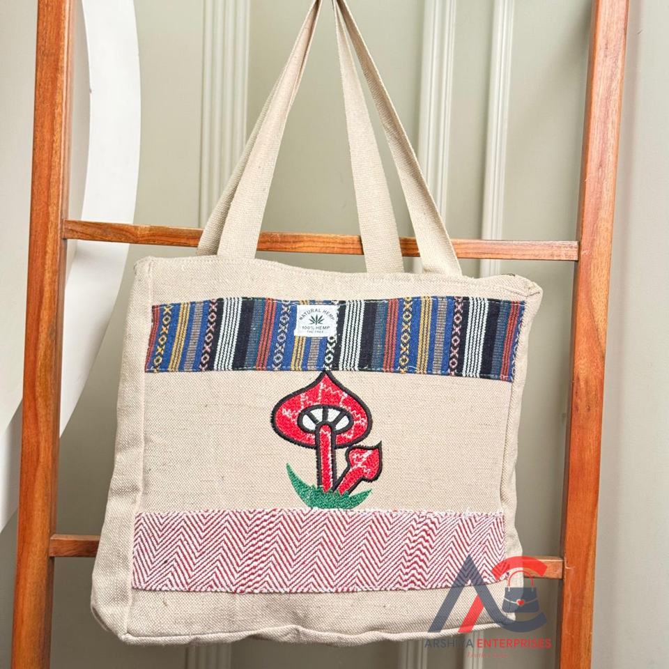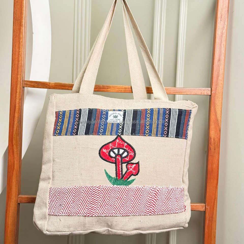 Type:Embroidered Mushroom Symbol Hemp Tote Bag