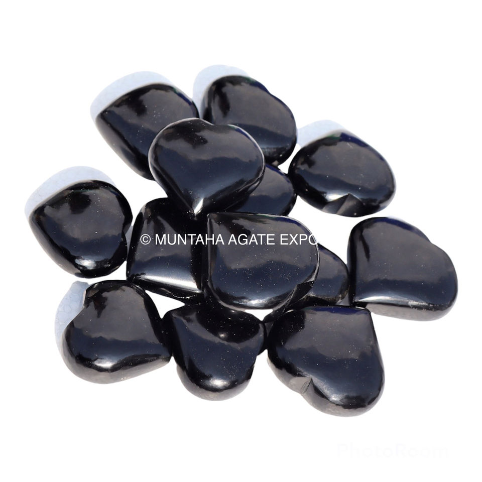 Wholesale Large Handmade Black Obsidian Gemstone Hearts Puffy Muntaha Agate Exports Bulk Crystal Heart Mementos