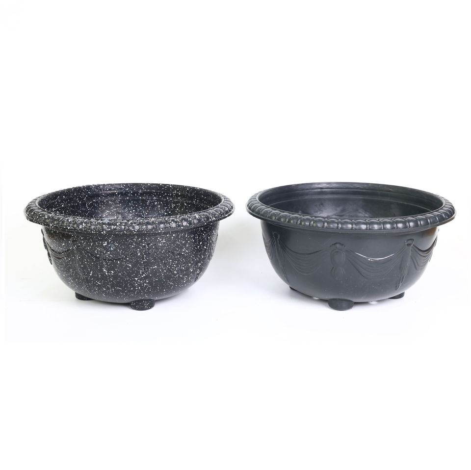 Wholesale Large Plastic Plant Bowl with Decorative Pattern and Feet, Durable PP Garden Flower Pot for Outdoor Landscaping U42