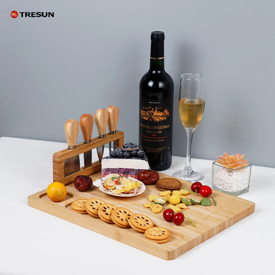 Wholesale Large Wood Eco Friendly Custom logo Wooden Bamboo Charcuterie Platter and Serving Cheese Board Set With 4 Knife Set