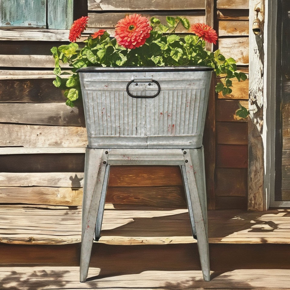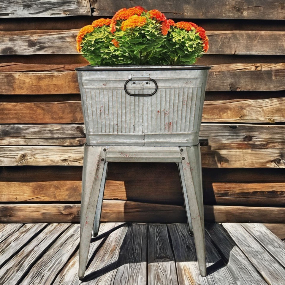 Wholesale Large square Galvanized metal Storage Planter With Stand Plant Stand Fountain Planter for Home Decor