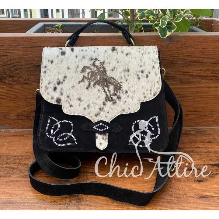 Wholesale Laser Engraving Black Suede Leather Boot Stitch Crossbody Bags for Women Western Hair on Cowhide Designer Handbags