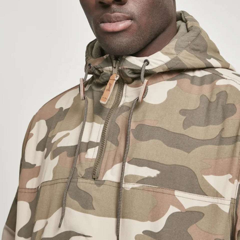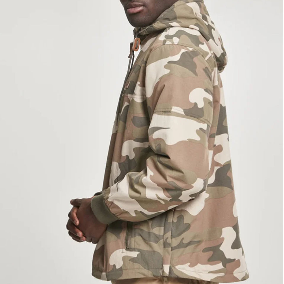 Wholesale Latest Men Camo Windbreaker Jacket Front 1/4 Zip with Hood 2 Side Pocket Plus Size Custom Camo Windbreaker Jacket