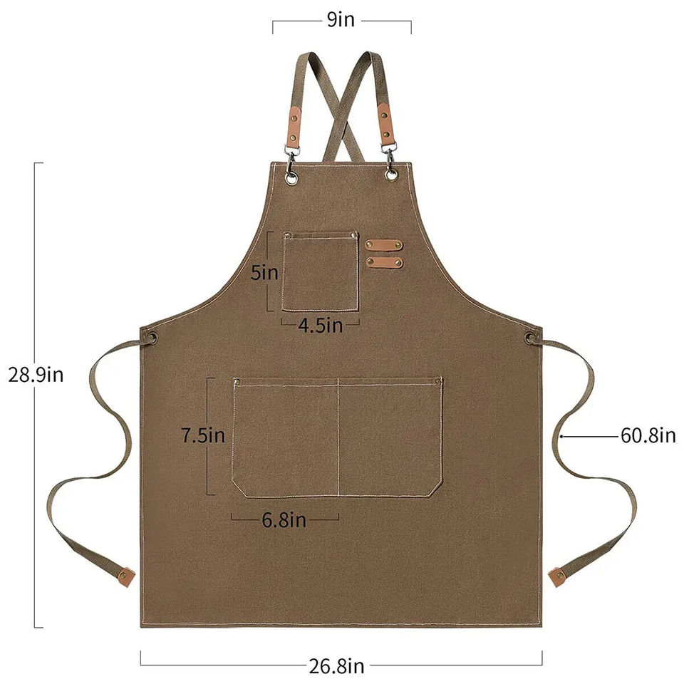 Wholesale Heavy Duty Kitchen Cooking Sleeveless Apron Custom Logo Printed Waterproof Denim Canvas Multiple Pockets Leather Strap