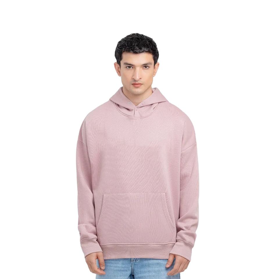 Wholesale Light Pink Men's Crocheted Pullover Hoodies Soft Fleece Winter Sweatshirt for Sportswear Customizable Brand Printing