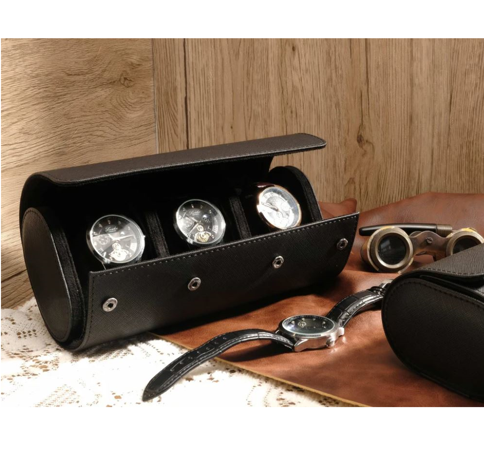 Wholesale Lightweight Leather 3-Slot Watch Organizer Collection Case Protective Travel Case for Watches
