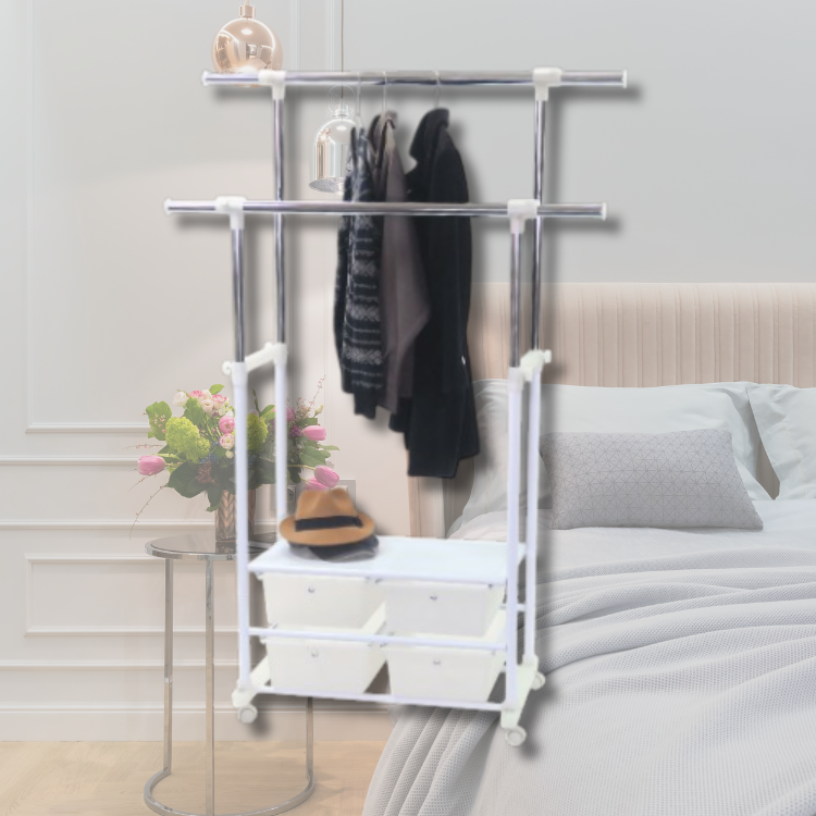 Product Name:Wholesale light weight moveable clothes stand with four drawers