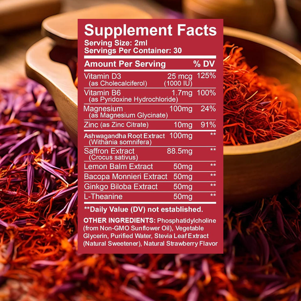 Wholesale Liposomal Saffron Extract Liquid Drops With Ashwagandha Root Extract for Adults Support Emotional Calm Balance Drops