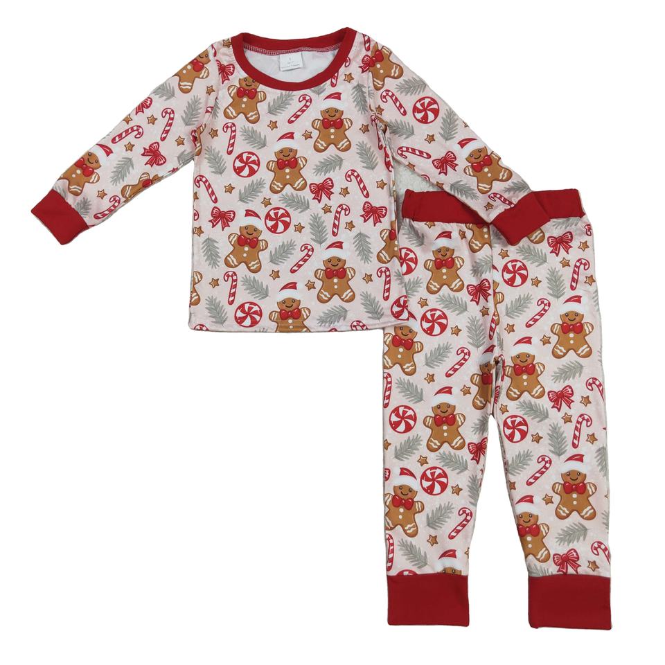 Wholesale Little Boy Boutique Christmas gingerbread candy tree Print Fall Outfits Toddler Boy Long Sleeve Pajamas Clothing Set