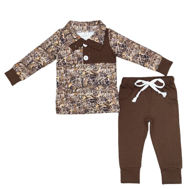 Wholesale Little Boy Boutique dry branch Print Fall Outfits Toddler Boy Long Sleeve Child Clothing Set