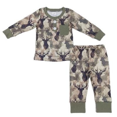 Wholesale Little Boy Boutique green deer Print Fall Outfits Toddler Boy Long Sleeve Pajamas Clothing Set