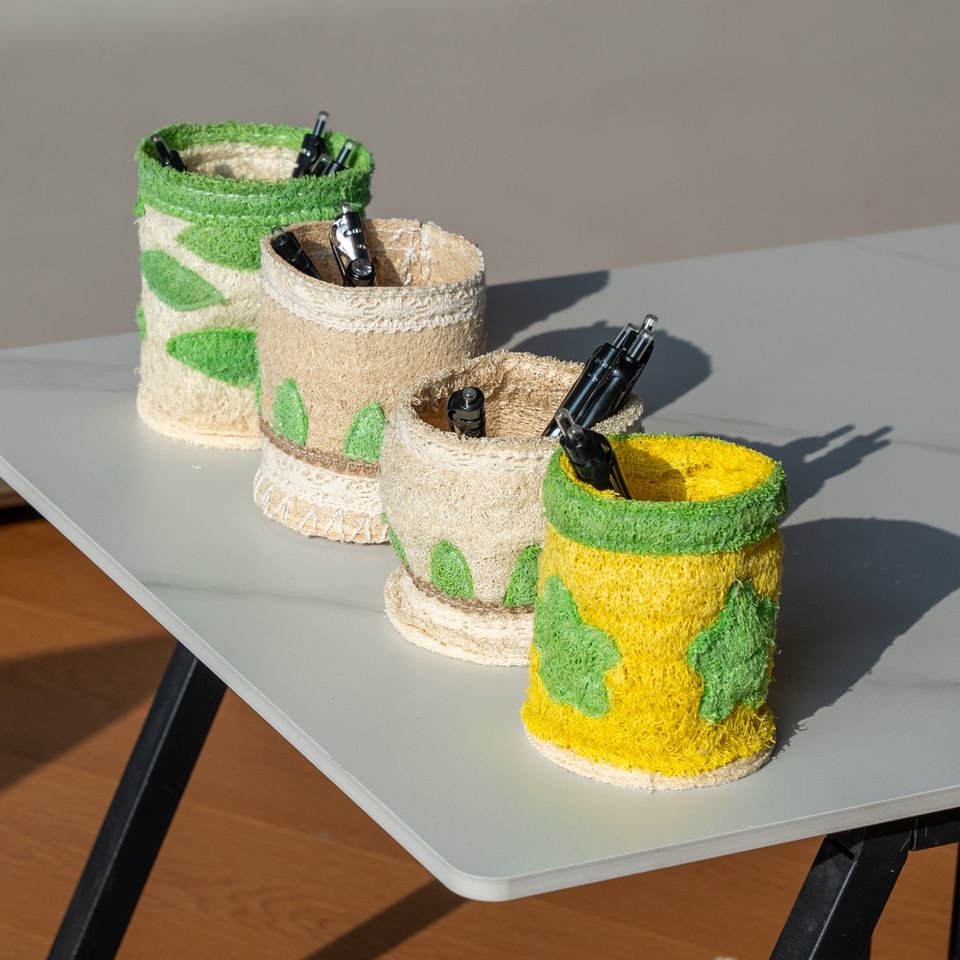 Loofah pen container