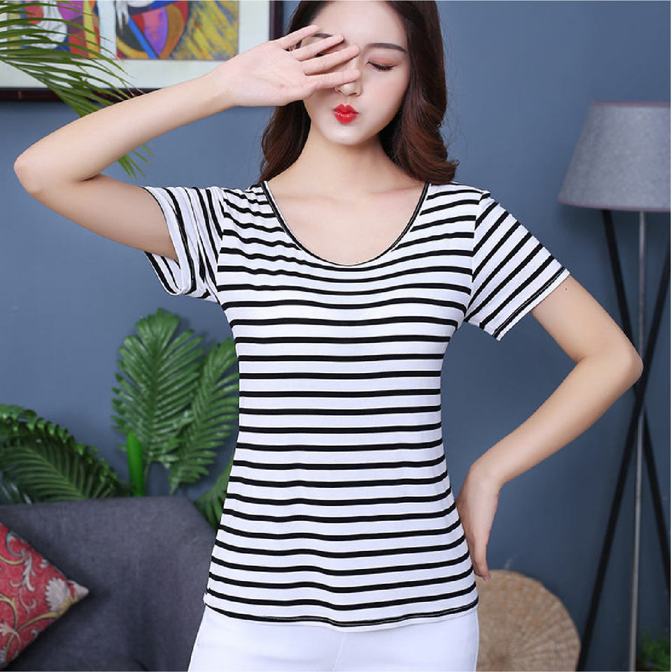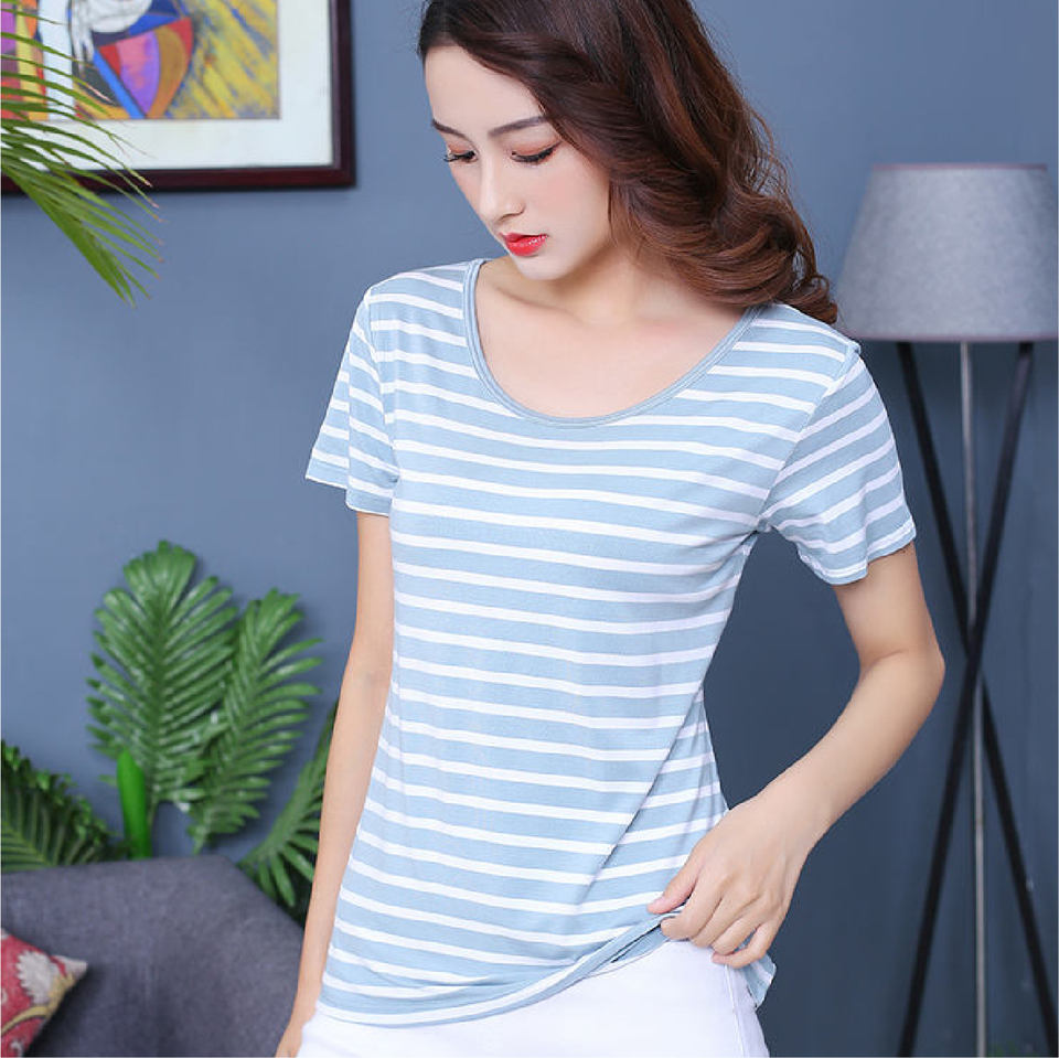 Wholesale Loose O-Neck T-Shirt High Quality Short Length Striped Design T-Shirt Women Casual Comfortable Breathable Top