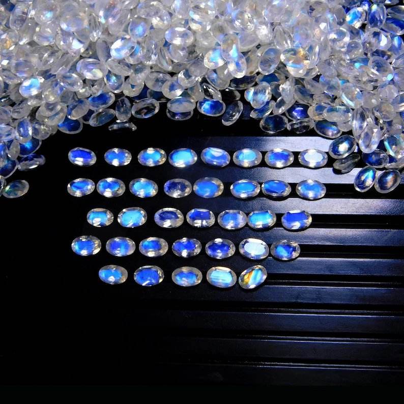 Wholesale Lot of Rainbow Moonstone Faceted Cut Eye Clean Oval Shape Loose Gemstone Calibrated Mix