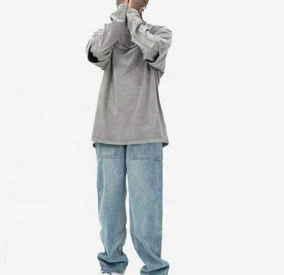 Wholesale Low Price 100%cotton T-shirt for men Acid Wash long Sleeve loose fit Quality Material Acid Wash long Sleeve T-shirt