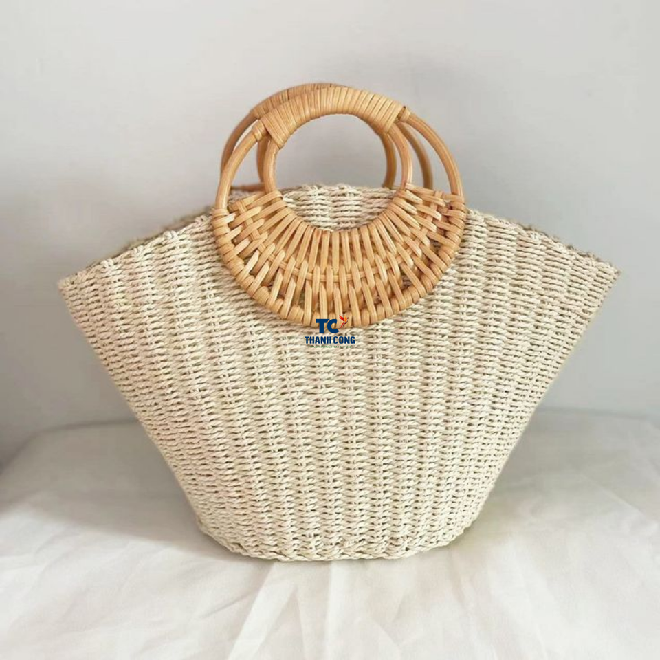 Wholesale Low Price Beach Bag Water Hyacinth Handbag Straw Tote Bag Rattan Bag Made in Vietnam