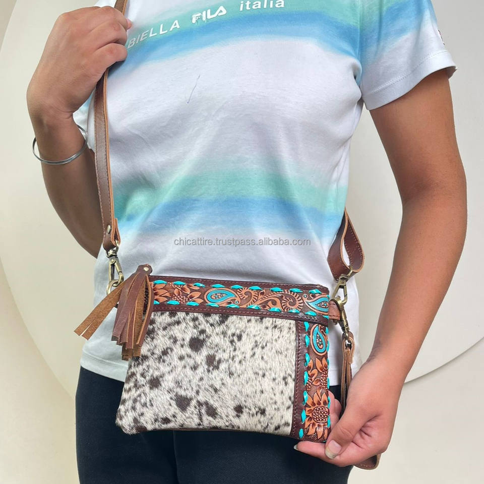 Hand Tooled Cowhide Fashionable Crossbody Bag