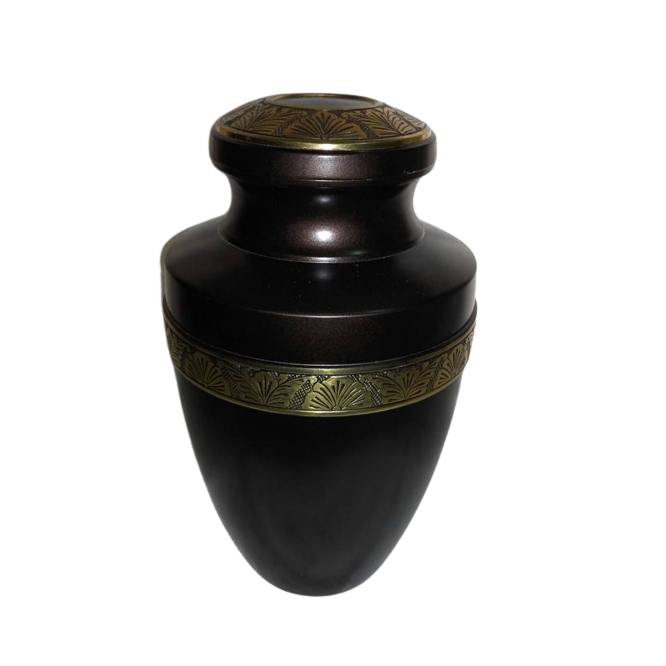 Wholesale Luxury Black Metal Cremation Urn Gold Engraved Band for Human Ashes-Adult Memorial Funeral Urn OEM Manufacturer.