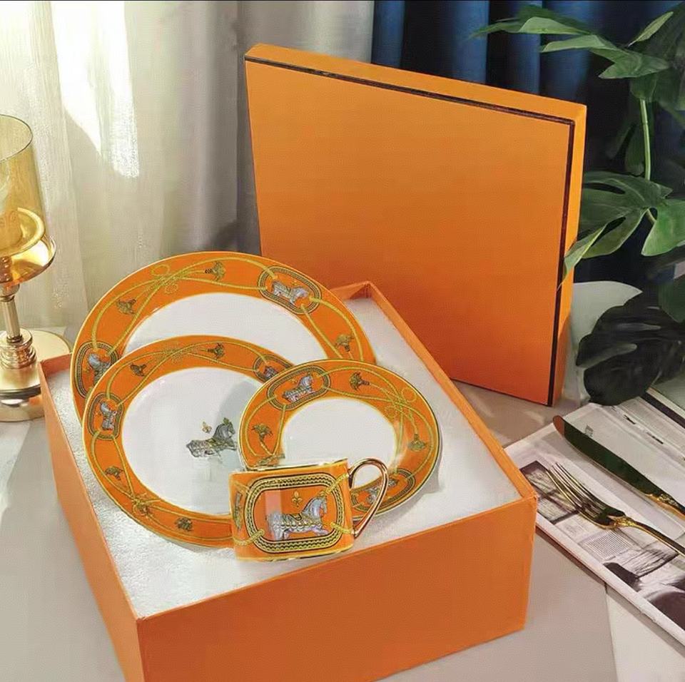 Wholesale Luxury Bone China Dinnerware Sets Classic Round Porcelain Dinner Set for Home Light and Dishwasher Safe
