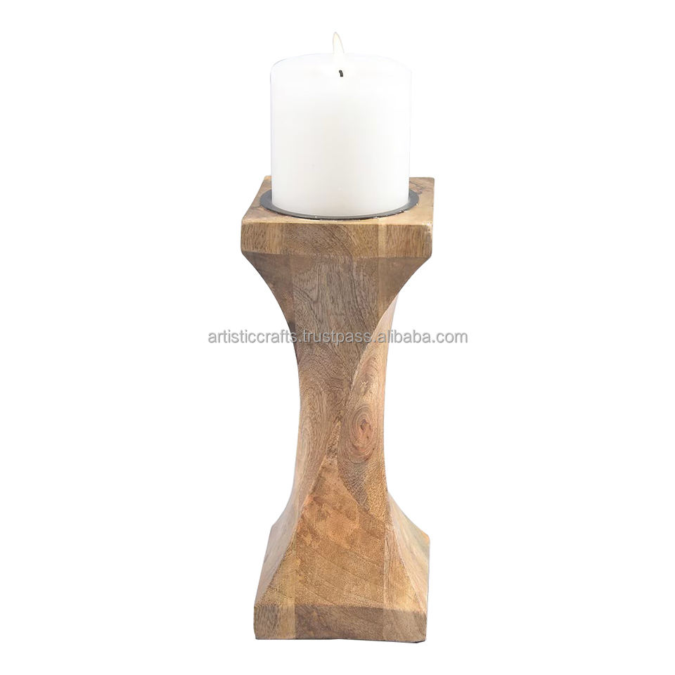 Wholesale Luxury Custom Handmade Mango Wood Candlestick Pillar for Home Christmas Decorations