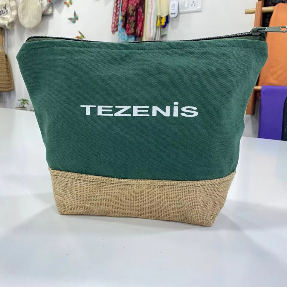 Wholesale Luxury Custom Printed Pattern Cotton Canvas Cosmetic Pouch Fashion Zipper Makeup Bag for Women New Luxury Collection