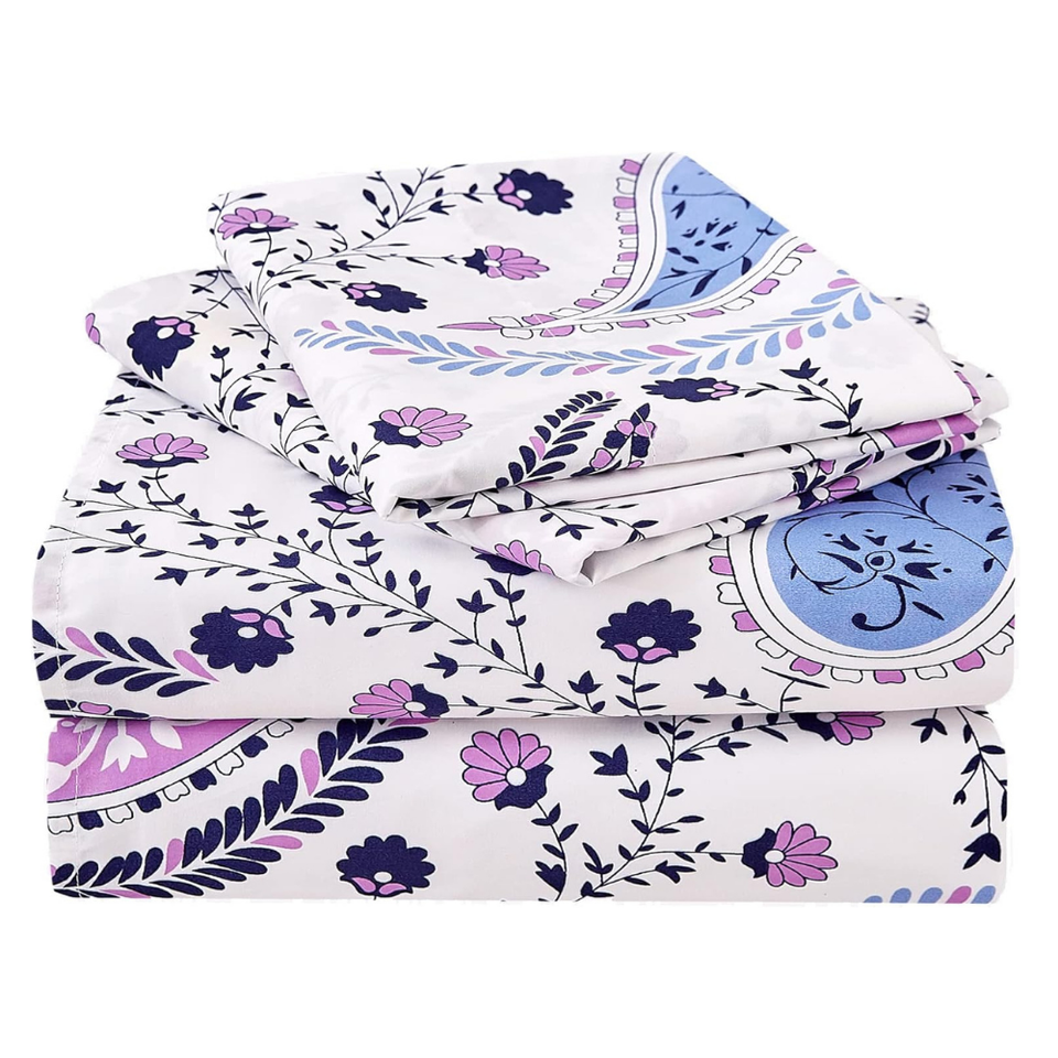 Wholesale Luxury Egyptian Microfiber Bed Sheet Set 600TC | Printed Floral Deep Pocket 4-Piece | Super Soft Bedding