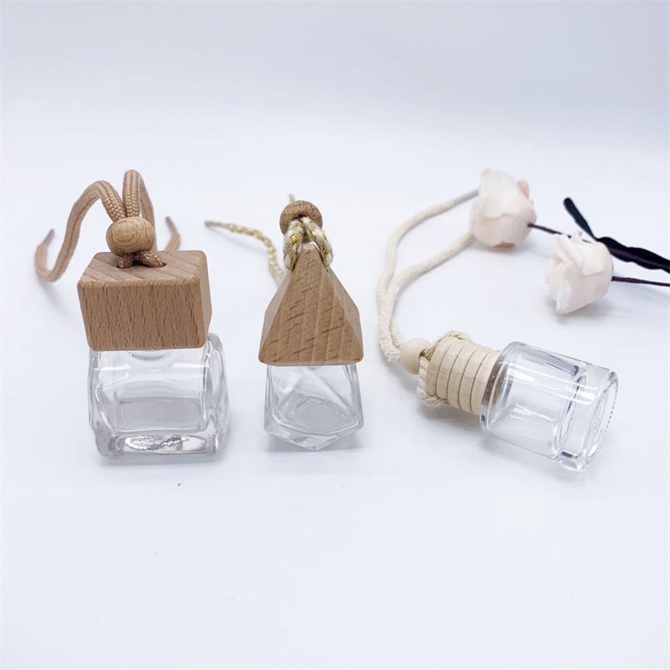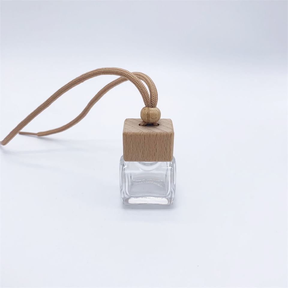 Wholesale Luxury Empty Car Perfume Glass Bottle Cylinder Shape Hanging Car Diffuser with Wooden Lid and Screw Cap Sealing