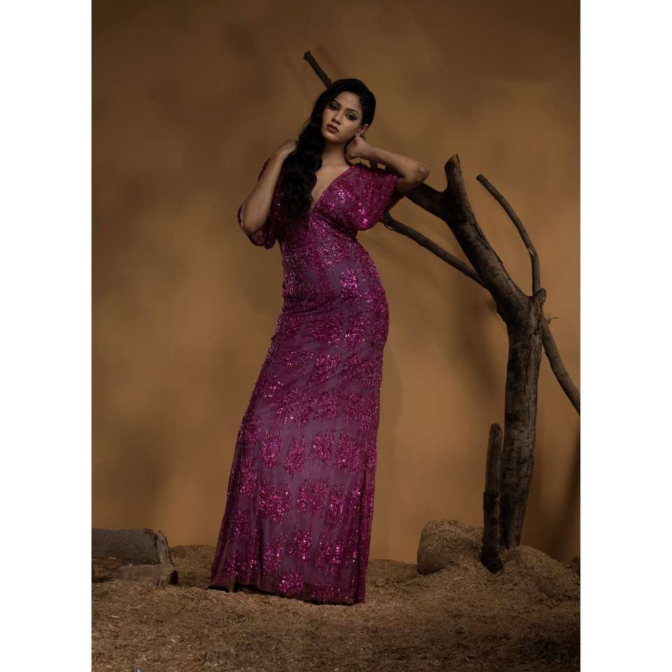 Premium mesh with full sequin embroideryMaterial