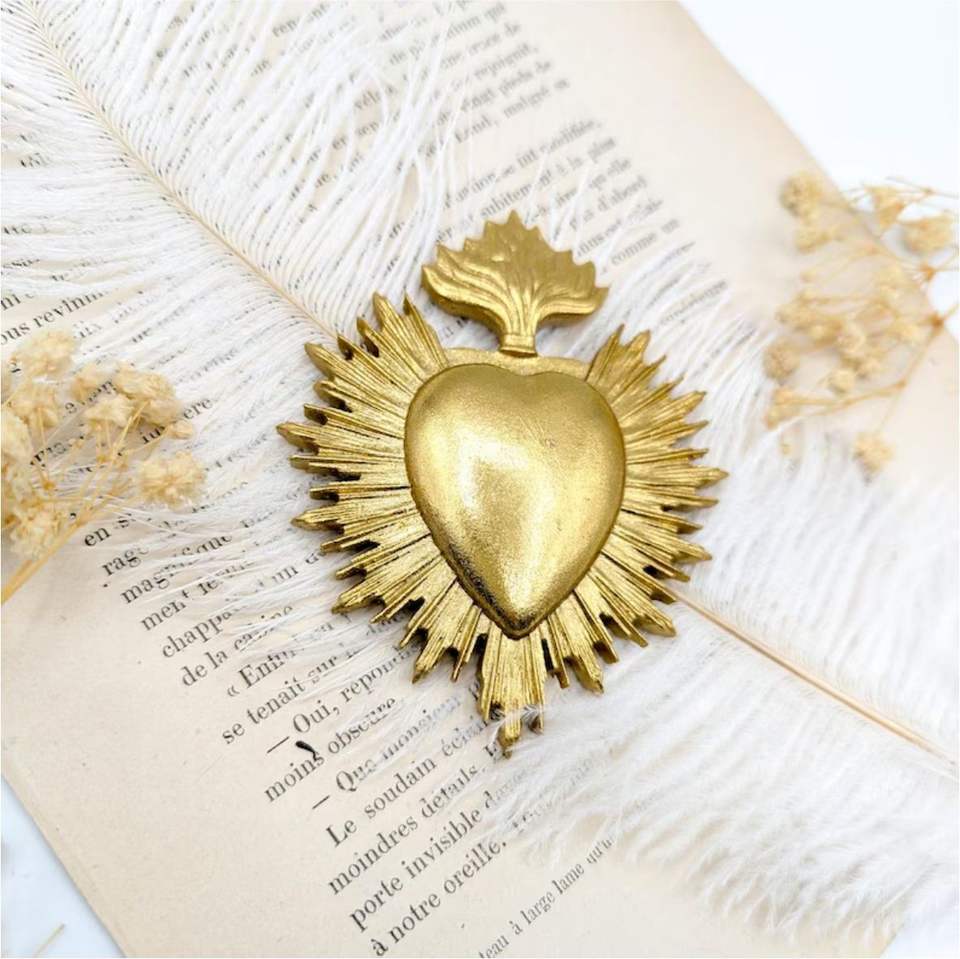Wholesale Luxury Gold Brass Sacred Heart Wall Hanging Ornate Filigree Metal Milagro Ornament Traditional MexicanArt Sacred Heart