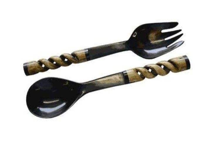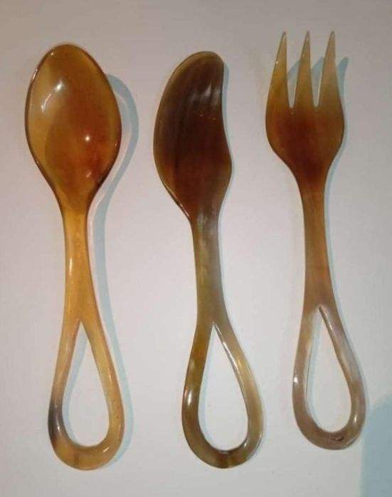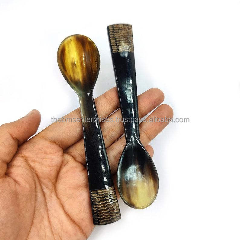 Wholesale Luxury Handmade Customized Mirror Horn Cheese Set Cutlery OX Horn Tea Spoon Fork Butter Knife Very Low Prices