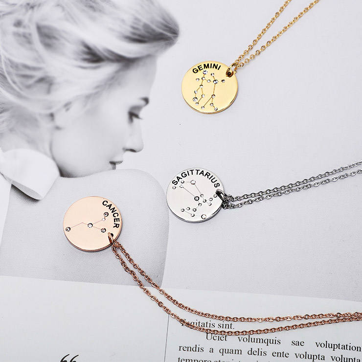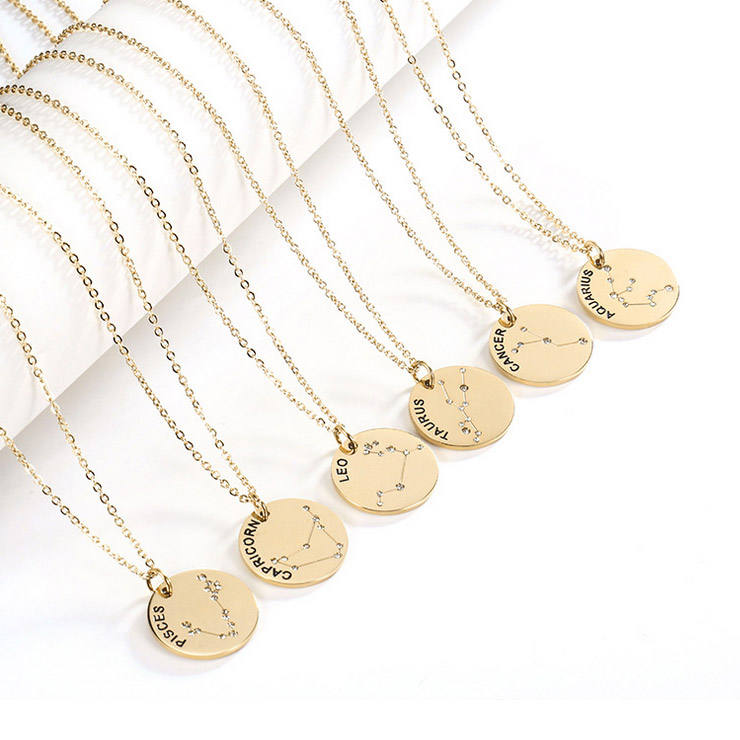 Wholesale Luxury Jewelry Gold Stainless Steel Horoscope Zodiac Sign Coin Necklace