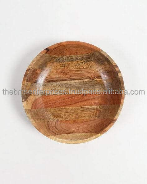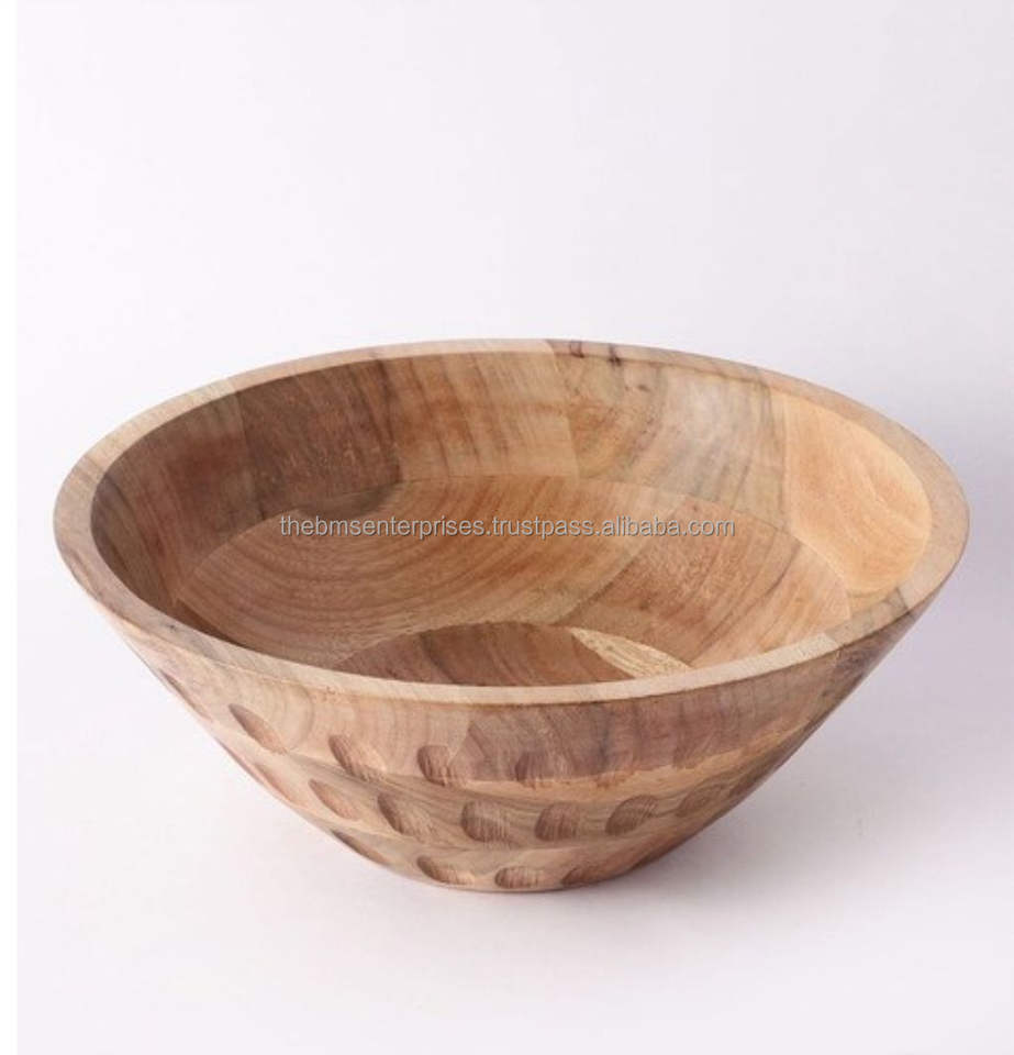 Wholesale Luxury Mango Wood Large Bowl Handmade Hammered Wooden Bowl for Home Decor Bathroom Kitchen for Salad Fruit Ham