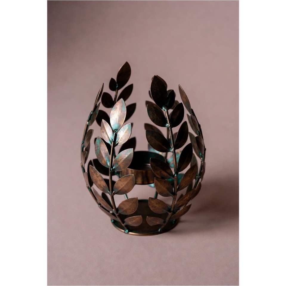Wholesale Luxury Metal Votive Candle Holder Creative Leaf Shape Tea Light Stand Indoor Garden Decoration Antique Bronze Candle