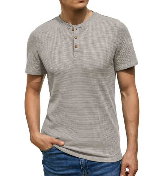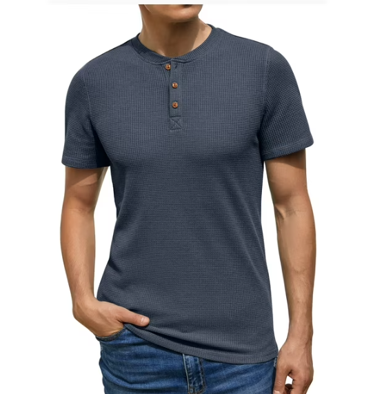 Wholesale Luxury Quality Men's Short Sleeve Waffle Henley T-Shirt Summer Casual Tee For Men