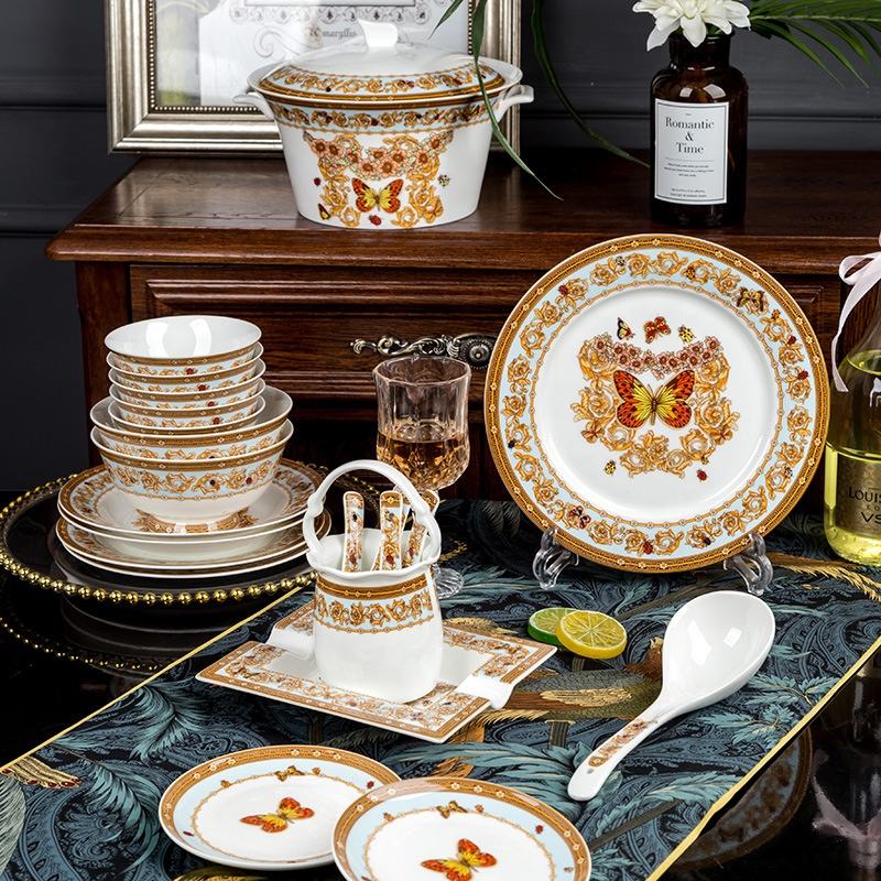 Wholesale Luxury Tableware Bowl Ceramic Tableware Plates 60pcs Set Wedding Dinner Plates