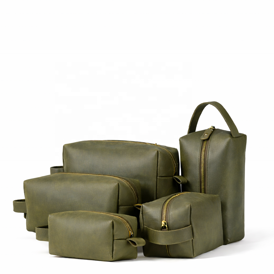Wholesale Luxury Vintage Genuine Leather Zipper Secure Waterproof Men Travel Wash Storage Bag