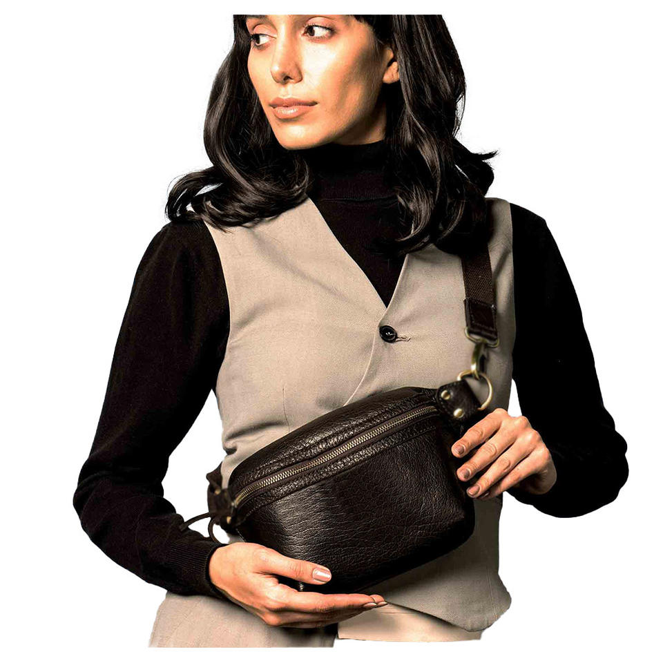 Wholesale Luxury Waterproof PU Leather Fanny Pack Custom Large Waist Bag with Zipper Closure for Men for Outdoor Travel