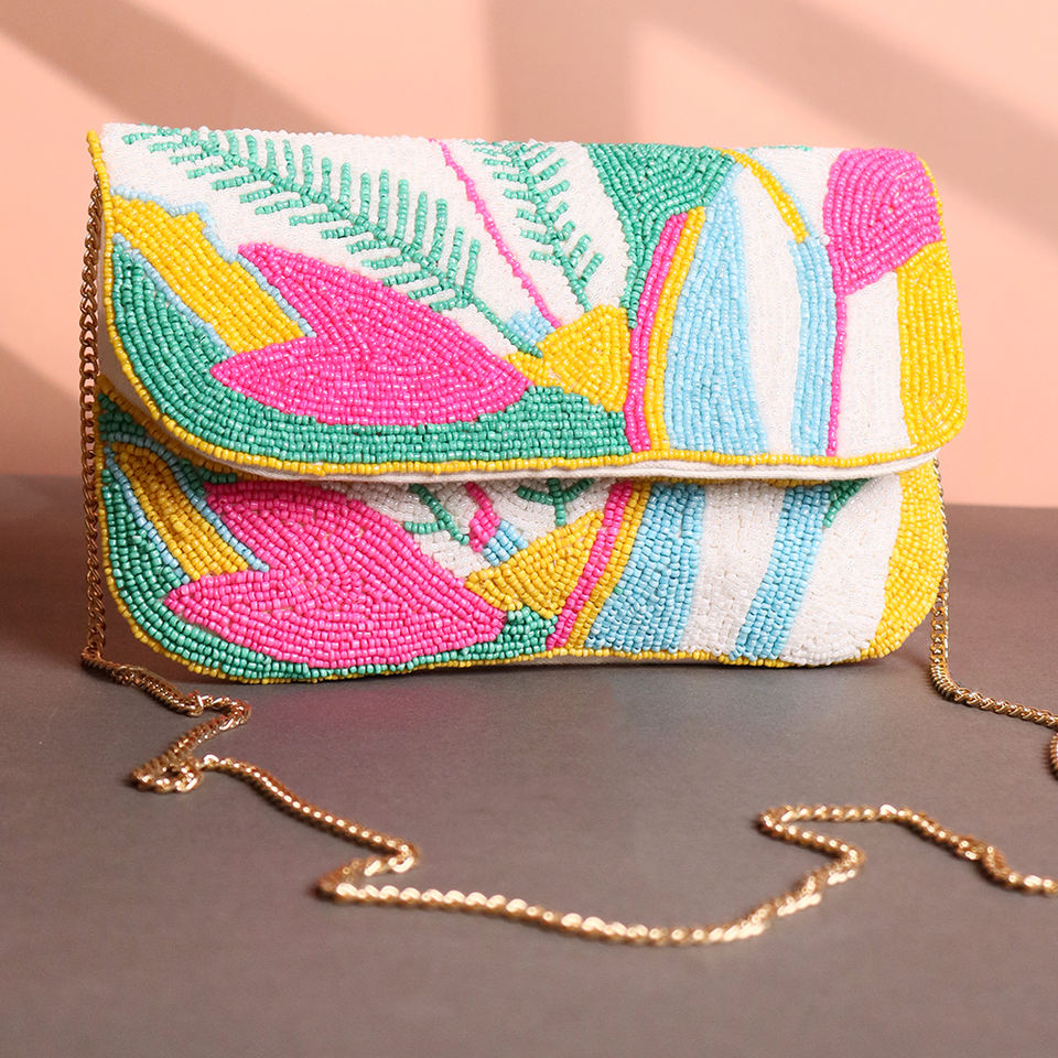 Stylish Multicolor Glass Beaded Cotton Clutch Bag