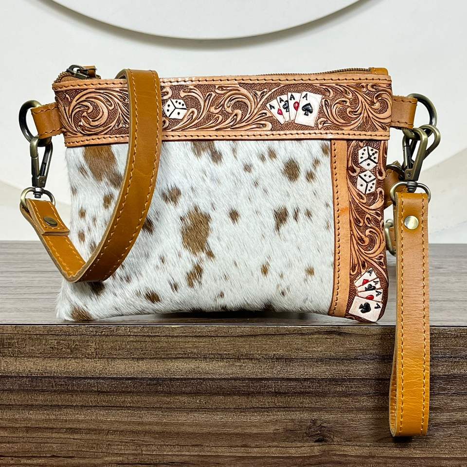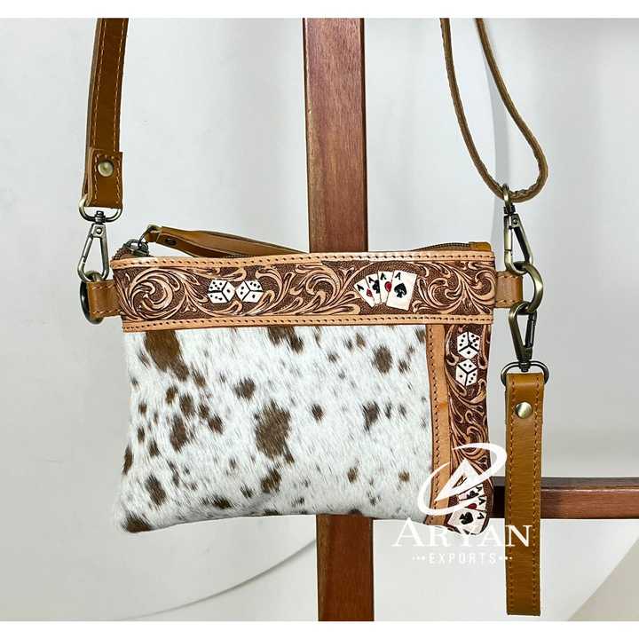Hand Tooled Cowhide Leather Fashionable Crossbody Bag