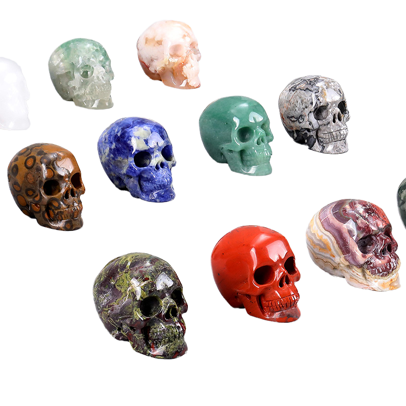 Wholesale MN EXPORTS 1.75 Inch Natural Crystal Skulls Hand Carved DIY Mini Carving Statue Healing Gemstone Craft Vintage