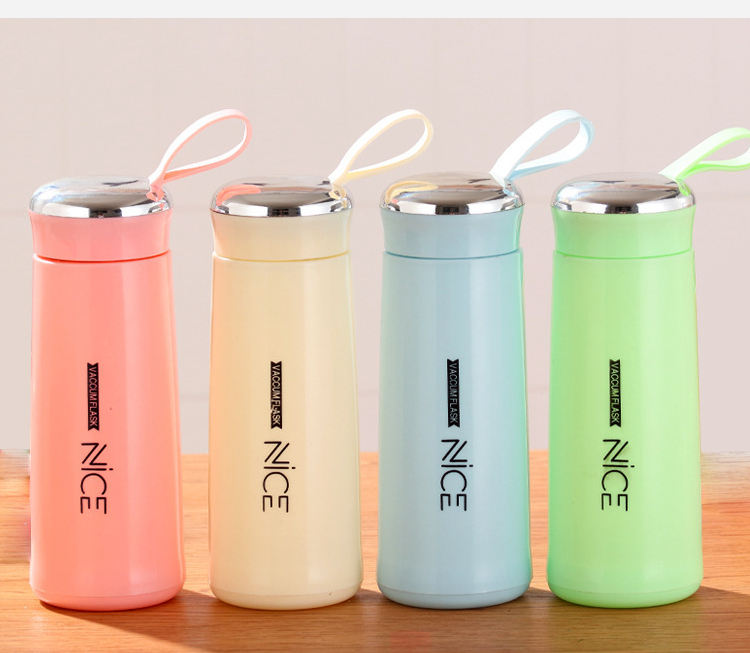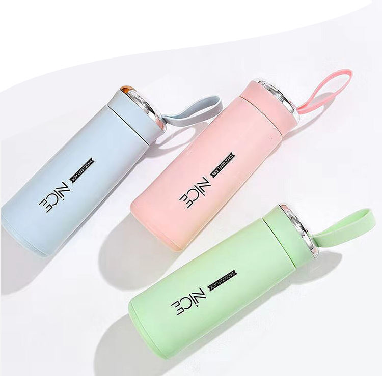 Wholesale Macaron Nice Advertising Gift Glass Liner Creative Water Thermos Simple Department Store Student Bottle With Handle