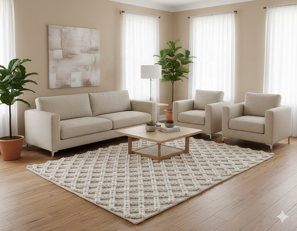 Wholesale Machine Made Velvet Non-Slip Rug-Ivory/Cream Cable Knit Braided Area Carpet for Scandinavian Style Home Decor